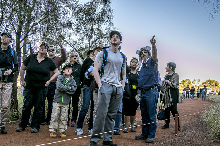 We then head to the base of Uluru (Ayers Rock), which is next to the entrance to the Uluru climb. From here one of the two guides will take you on a guided Mala Walk. The Mala Walk follows the north-west side of Uluru, where there are many fine examples of Anangu rock art, and you can experience the wonder of the sheer vertical walls. The guide will tell dreamtime stories of the Anangu People.