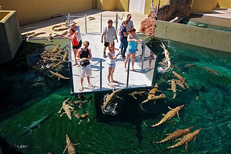 - Highlights include: Swim with Crocs pool Fishing for Crocs platform World’s largest display of Australian Reptiles 200,000 litre aquarium with daily “barra” feeding World of Crocs, replica display & museum Daily activities including, meet the reptiles, feed the crocs, bite force, feed the reptiles and more!