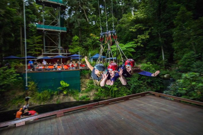 Do it solo or buddied up – up to three people can enjoy the Jungle Swing together and soar at speeds in excess of 100km/hr!!