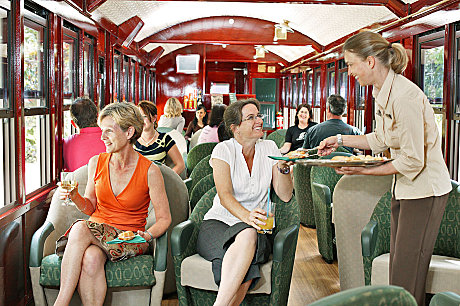 • Morning/Afternoon Tea is included in Gold Class and feature a selection of Queensland and local Tablelands produce such as Gallo Dairyland Cheese, Skybury Coffee, Wondaree Macadamias, Mango to Go (100% pure mango treat), freshly baked muffins, Sirromet wines and Great Northern Brewing Company Super Crisp Lager. (note: Alcoholic beverages not served on Anzac Day 25 April)