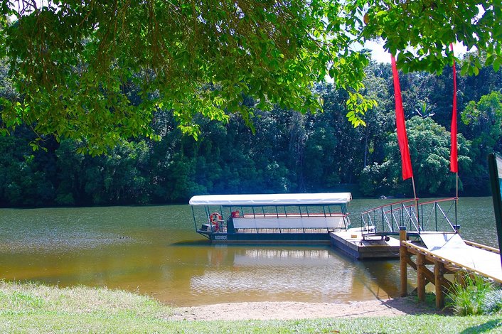 A 45-minute calm water cruise on the KURANDA RIVERBOAT. The commentary highlights various aspects of the World's most ancient tropical rainforest in Australia, river life and the history of Kuranda. The river is home to a host of wildlife including freshwater crocodiles, turtles, snakes, fish and birds. Occasionally a wild cassowary may be spotted on the edge of the rainforest. All tours on the Kuranda Riverboat are subject to seasonal river conditions and group bookings.