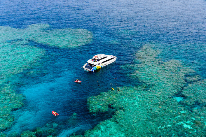 Experience a full-day Great Barrier Reef snorkeling adventure, taking you to selected moorings around Bait Reef. Visit dive sites around Bait Reef including Stepping Stones, Paradise Lagoon and Mantaray drop-off. Travel in style on a custom designed dive vessel which has two levels of air-conditioned luxury, lounge-style seating, a partially shaded deck and freshwater hot and cold showers.